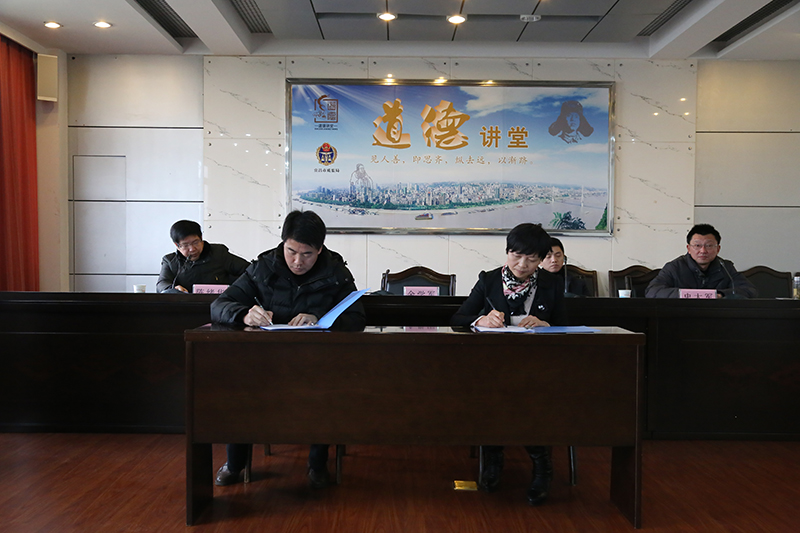 会上,中心党组书记、主任余学军与各部门负责人签订了2017年目标管理、党风廉政建设、社会管理综合治理和安全生产等四个方面的工作责任书。