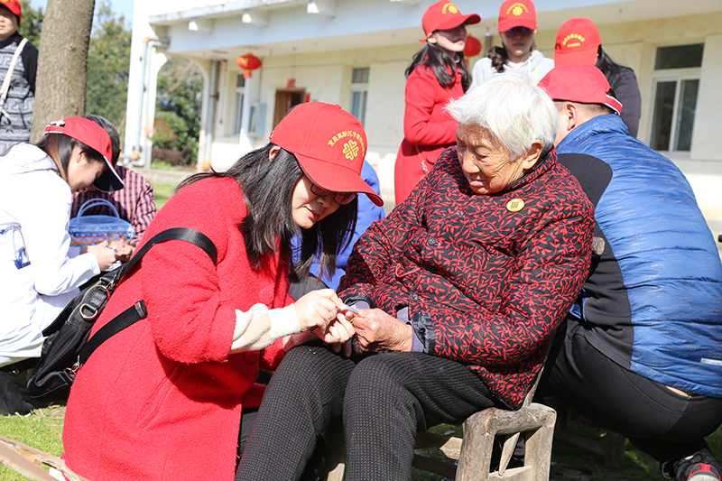 志愿者为老人修剪指甲