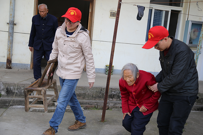 志愿者们带着生活用品慰问老人们