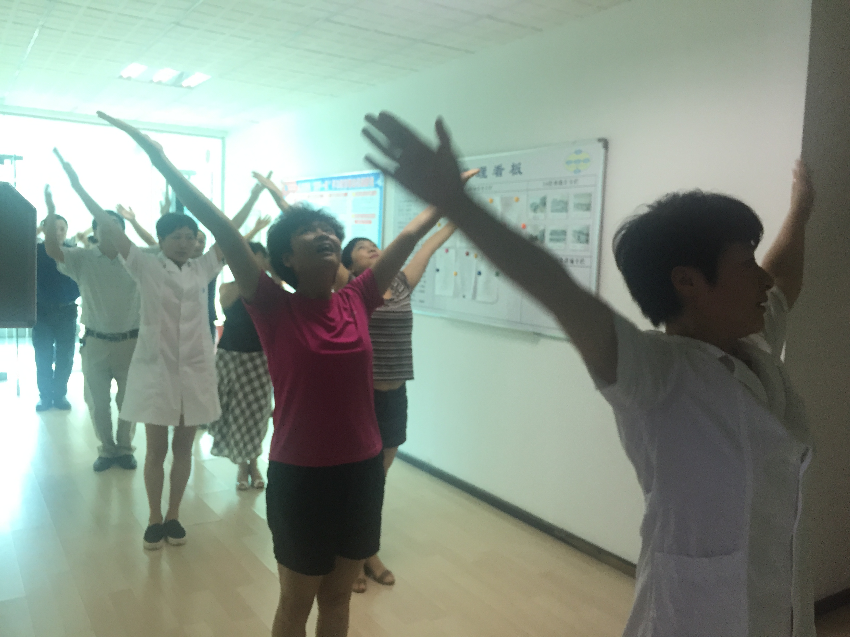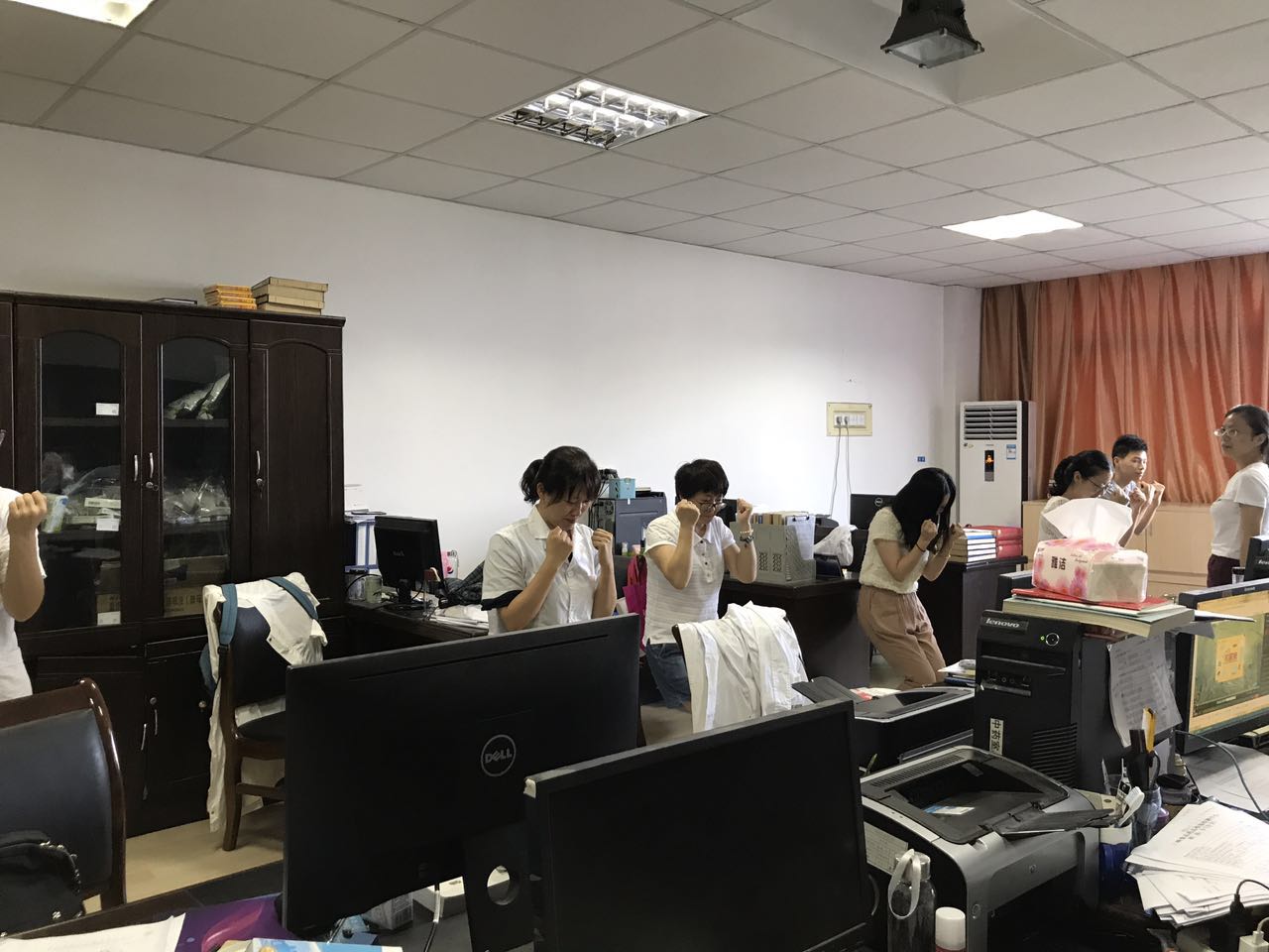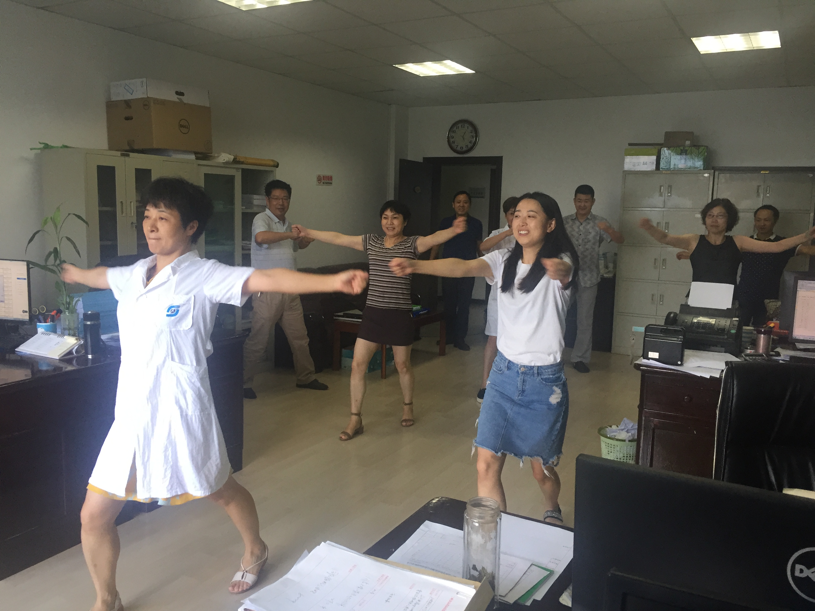 中心各部门积极组织干部职工排练第九套广播体操。9月1日起将正式推行工间操。