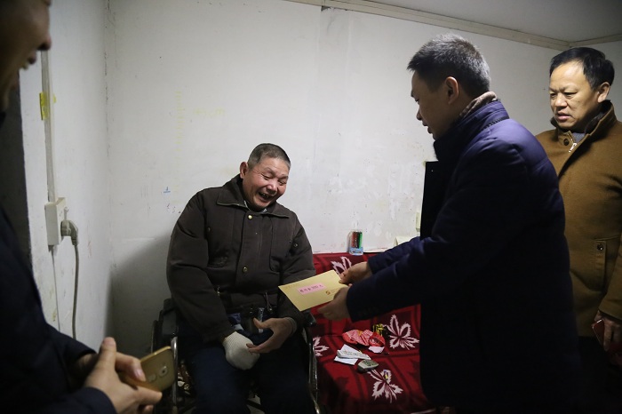 在因病致困的居民罗起河家中,慰问组与他亲切交谈,了解目前的身体情况以及生活中遇到的实际困难,并鼓励他要积极乐观,坚定生活的信念,勇敢地面对生活困难。