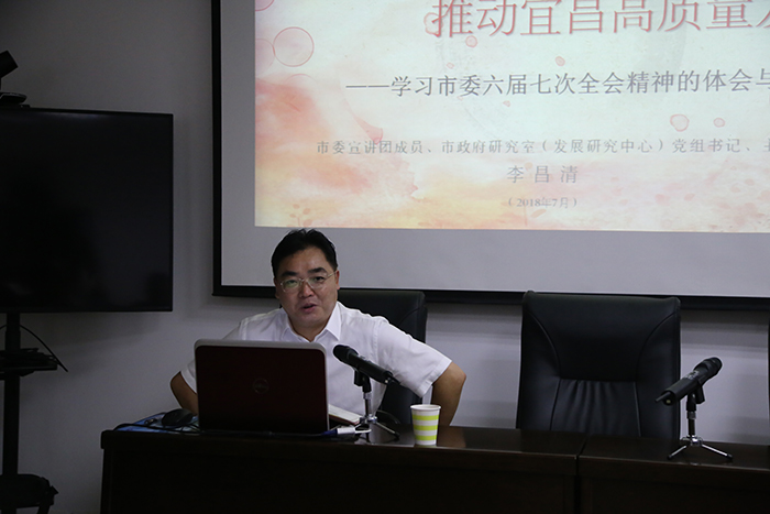 辅导会上,李昌清围绕一场深刻变革、五项重点工作、三个切实用好、当前经济形势等方面,系统讲解了习近平总书记视察湖北重要讲话精神,全面解读了市委六届七次全会精神,对宜昌如何推进新旧动能转换,实现高质量发展进行了系统的讲解。
