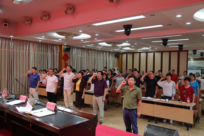 在雄壮激昂的国歌声中,参会人员庄重肃立,拉开了表彰大会的序幕。参会全体人员重温入党誓词,面向党旗庄严宣誓。大会对先进基层党组织、优秀共产党员、优秀党务工作者进行表彰。党组向受到表彰的先进党支部、优秀共产党员、优秀党务工作者表示热烈的祝贺,要求广大党员干部以他们为榜样,发挥好先锋模范作用;向辛勤工作在中心的共产党员们,特别是一线的同志们,致以节日的问候和衷心的感谢!