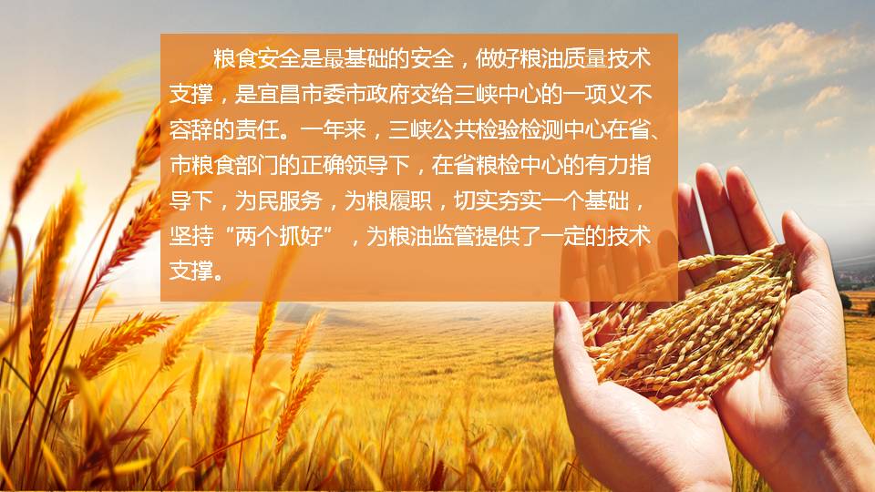 风物长宜放眼量。三峡公共检验检测中心自成立以来,在粮食质量检验检测方面做了一些工作,但与国家、省、市粮食监管部门的要求相比,与人民群众的期待相比,还有很大差距。下一步,我们将遵循习近平总书记关于新时代中国特色社会主义建设的总要求,更好服务监管,服务发展,在促进粮油经济高质量发展,保障粮食安全中做出自己更大的努力。