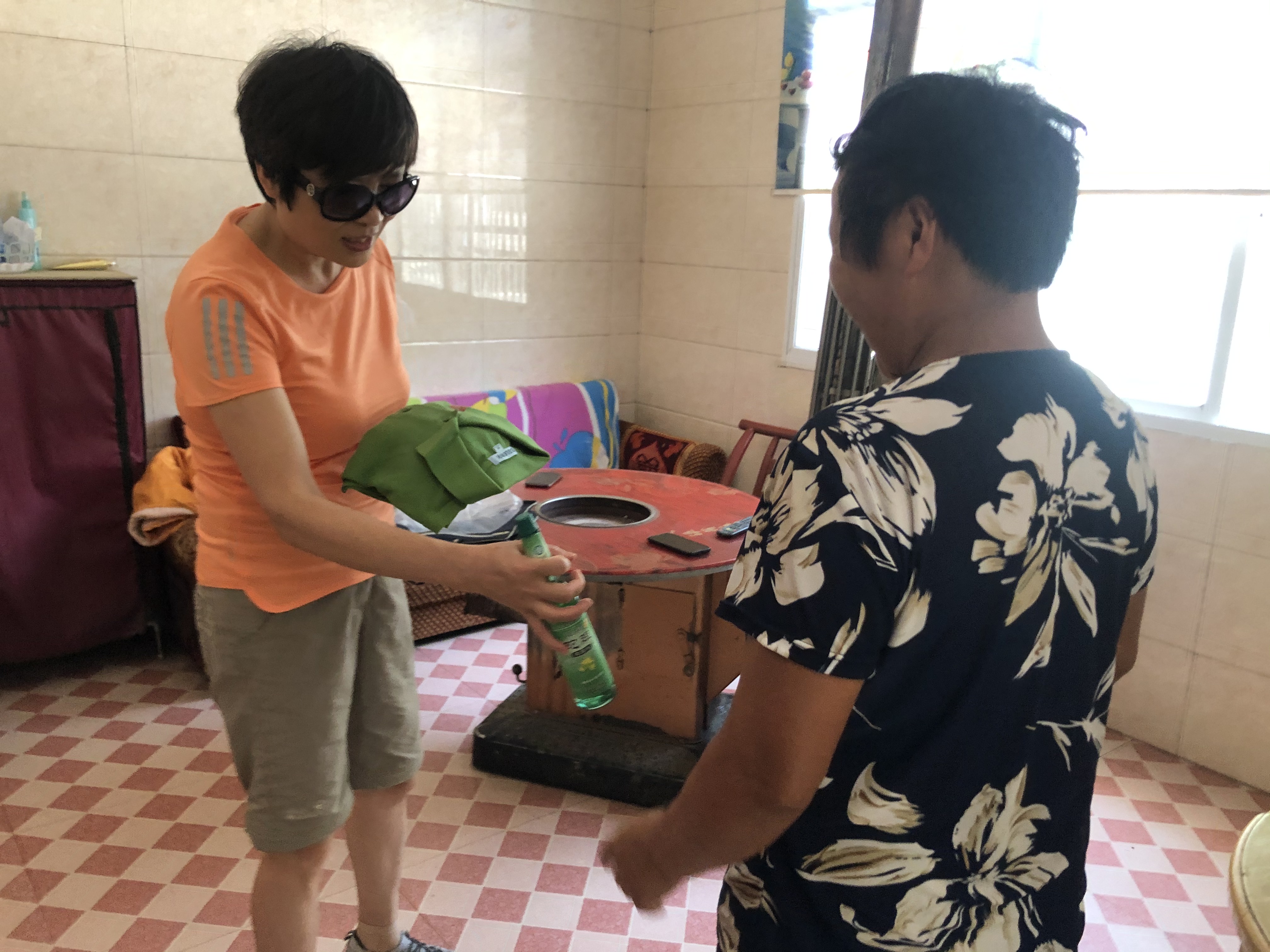 扶贫队员带着短袖、花露水等夏季防暑降温物品前往贫困户家中开展走访慰问。