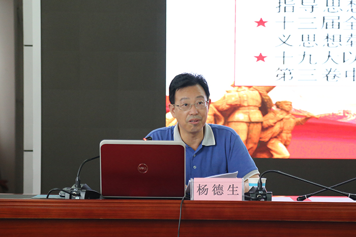 杨德生书记以《新时代的思想旗帜和行动指南》为题,紧密结合工作实例,从出版发行《习近平谈治国理政》第三卷的重大意义、《习近平谈治国理政》第三卷的精髓要义、学好用好《习近平谈治国理政》第三卷三个方面进行了系统、全面的辅导,进一步提高了党员干部对《习近平谈治国理政》第三卷的认识。