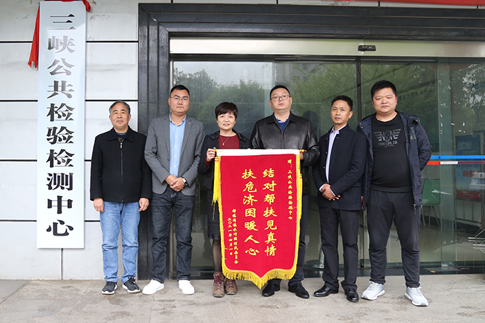 4月1日,长阳县都镇湾镇党委副书记刘军华和水竹园村支部书记李建海一行将一面“ 结对帮扶见真情 扶危济困暖人心 ”的锦旗送来三峡公共检验检测中心,以感谢三峡公共检验检测中心多年来对水竹园村脱贫攻坚工作给予的大力支持。