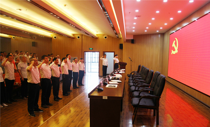 新发展党员入党宣誓,与会全体党员重温入党誓词