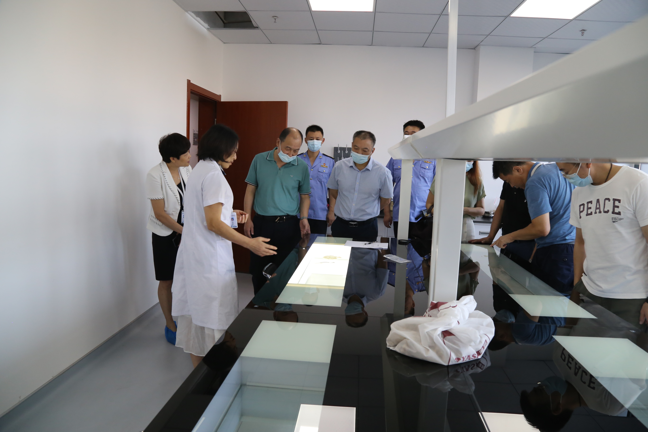黄浩志一行先后参观了食品检验实验室、中药材标本馆、展厅。