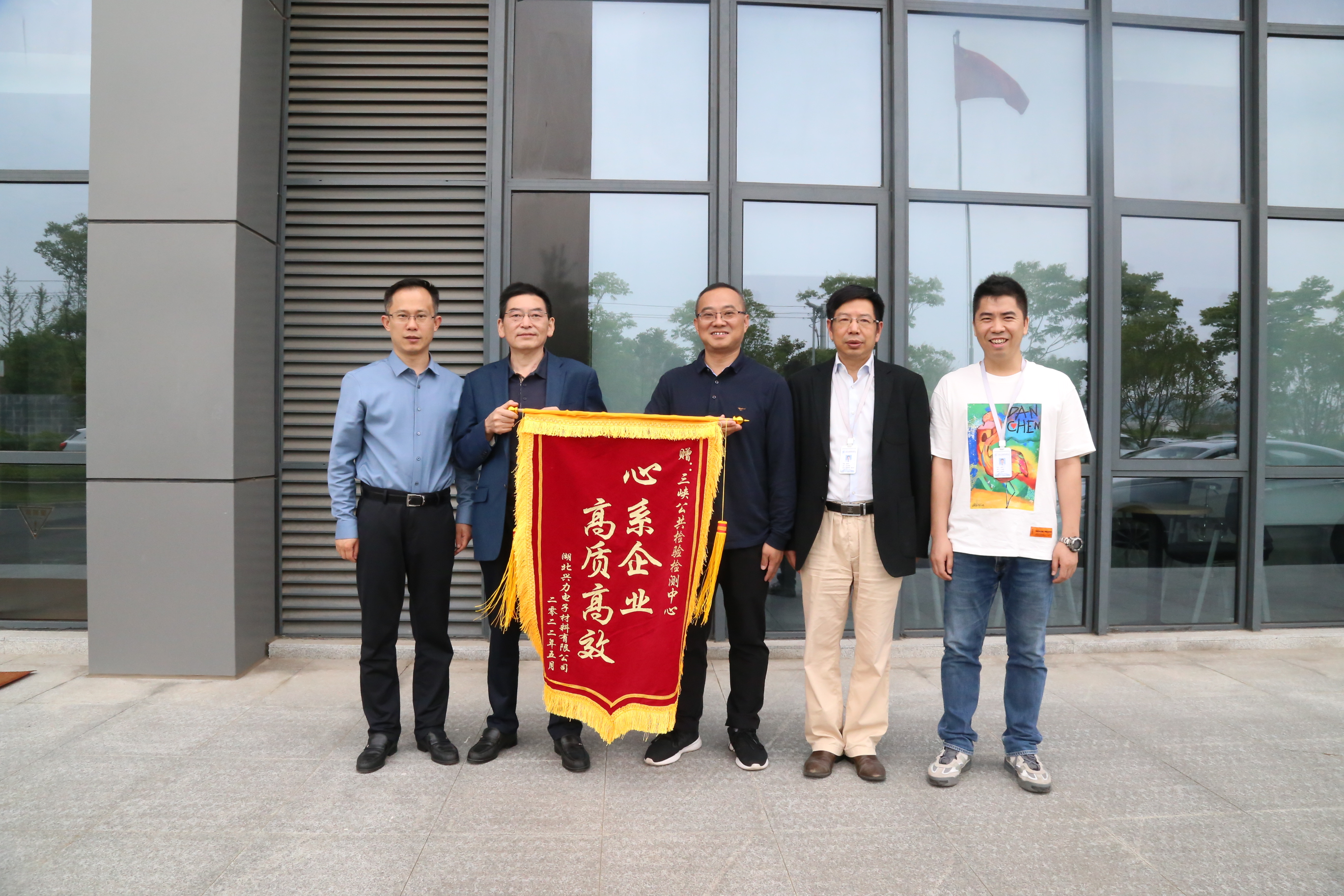 5月20日,湖北兴力电子材料有限公司将一面印有“心系企业 高质高效”字样的锦旗送到三峡公共检验检测中心,向该单位的热忱服务表示感谢。