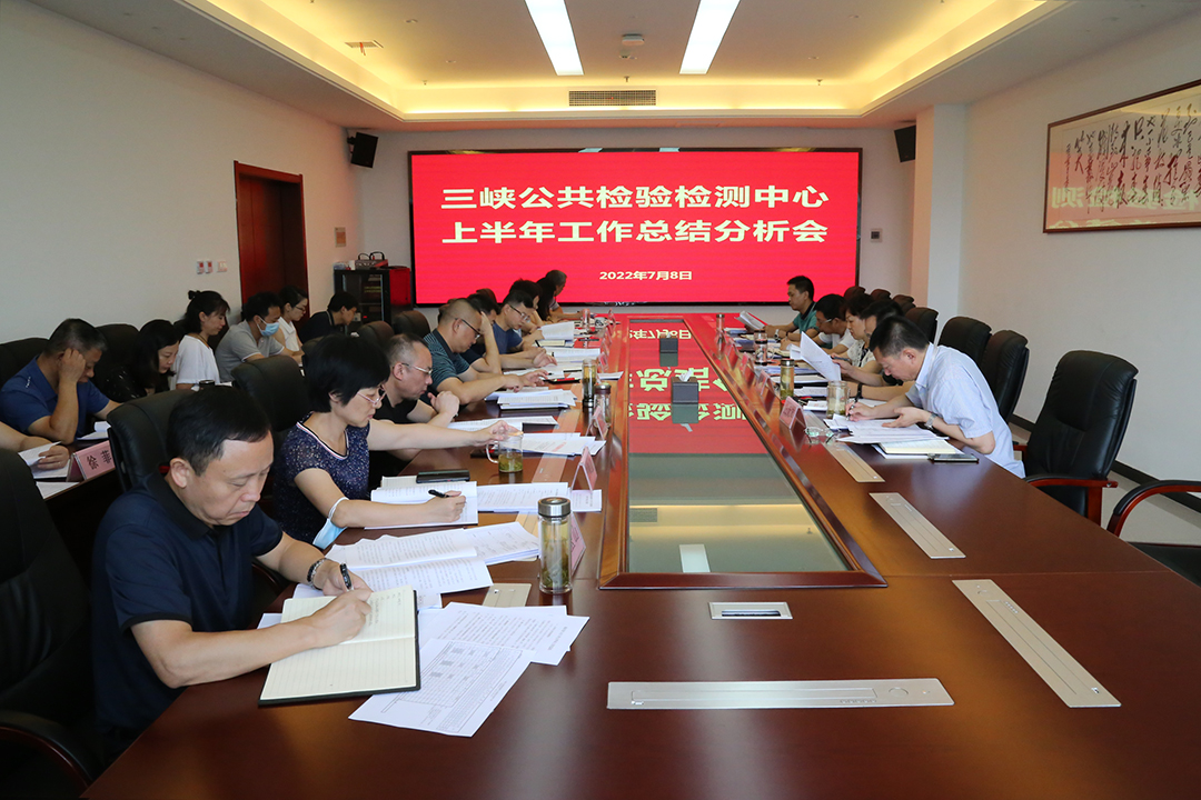 7月8日,三峡公共检验检测中心召开上半年工作总结分析会,全面回顾上半年工作,安排部署下半年重点工作。中心党组书记孙杨主持会议,班子成员及中层以上干部参加会议。