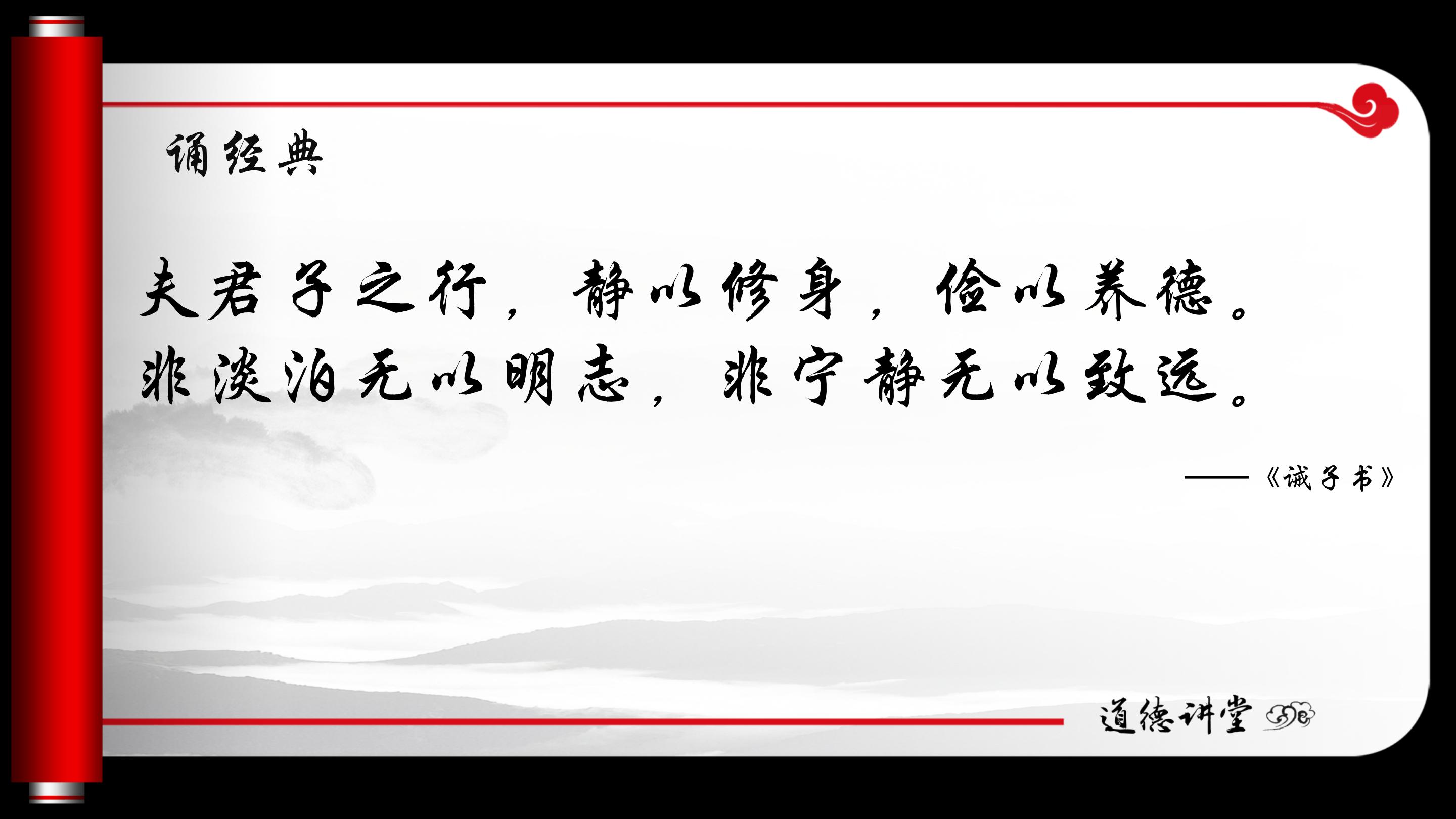 诵读《诫子书》中的名言警句“夫君子之行,静以修身,俭以养德。非淡泊无以明志,非宁静无以致远”。