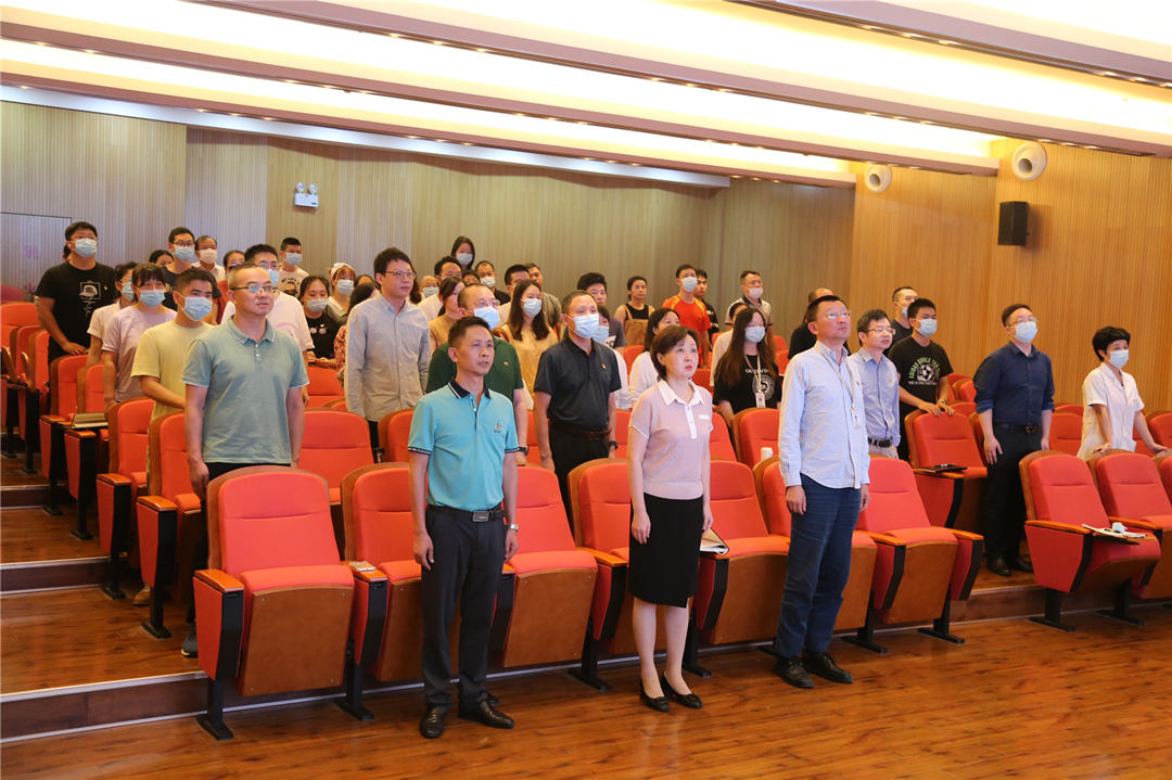 会上,全体干部职工集体诵读《橘颂》,并观看警示教育片。