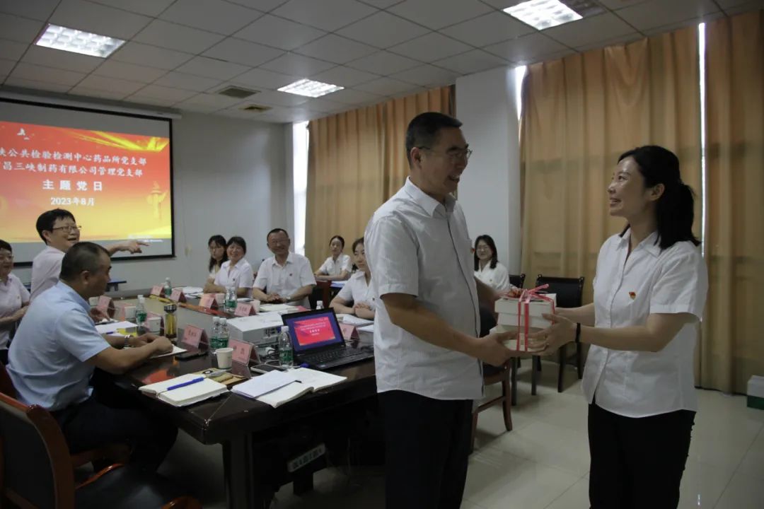中心药品所党支部向三峡制药管理党支部赠送党章、党员徽章及书籍
