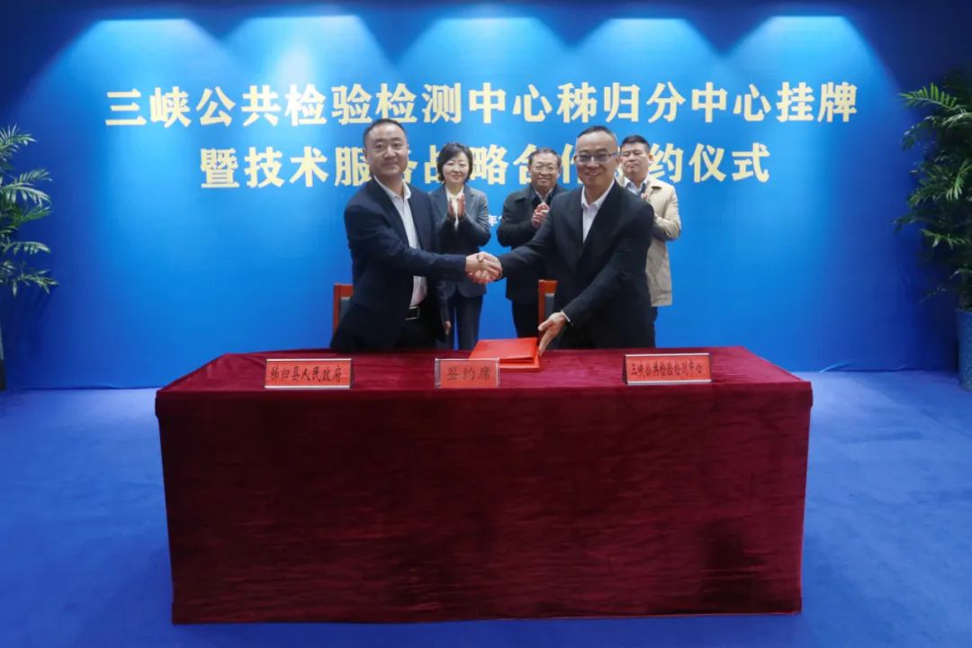 仪式上,三峡公共检验检测中心与秭归县政府签订技术服务战略合作协议。三峡公共检验检测中心将全面承担并完成秭归区域内的食品、药品、粮油等的监督抽样检测工作,双方还将共建湖北省柑橘产品质量检验检测中心。