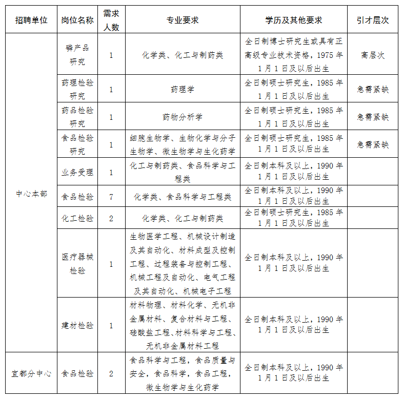 三峡公共检验检测中心2020年人才招聘公告