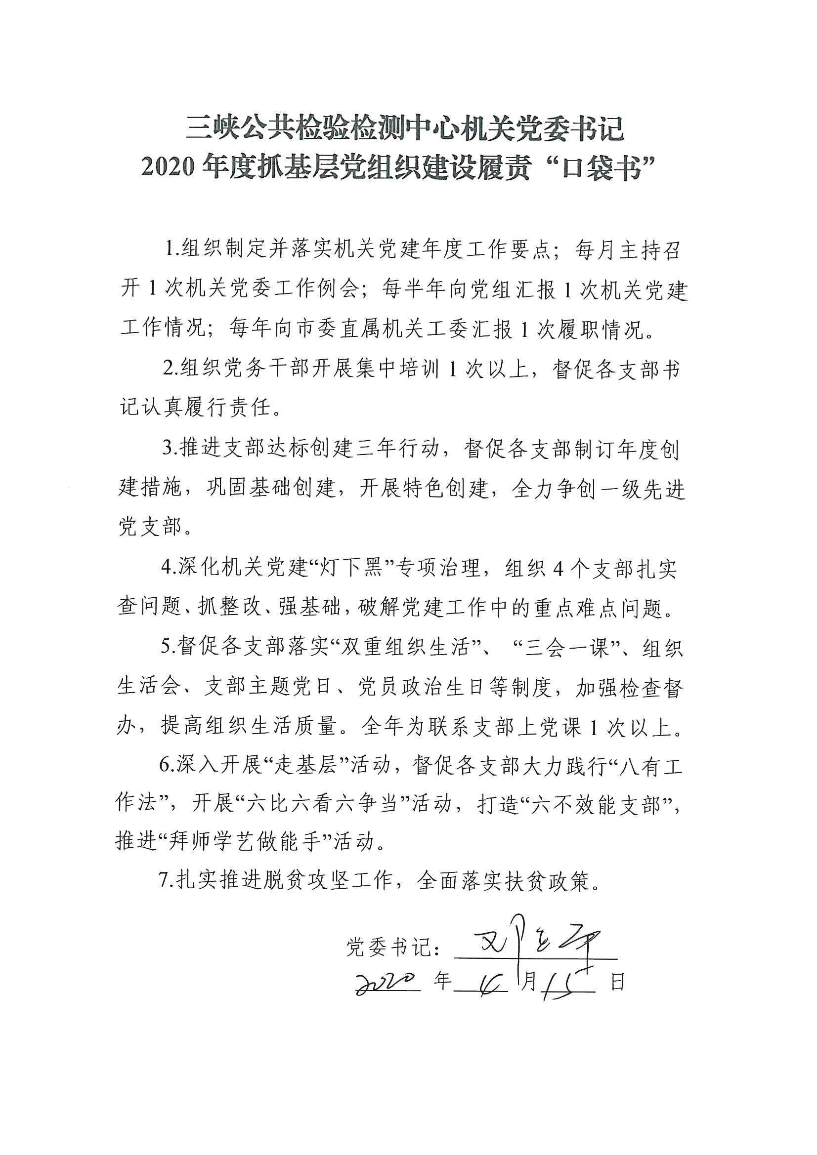 三峡公共检验检测中心机关党委书记2020年度抓基层党组织建设履责“口袋书”