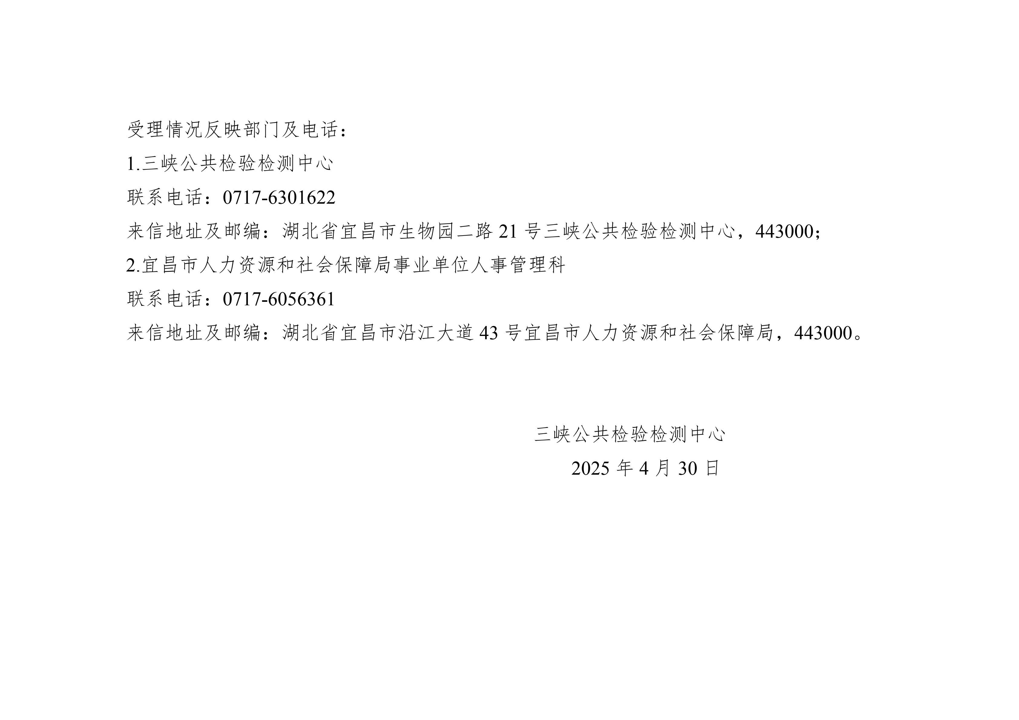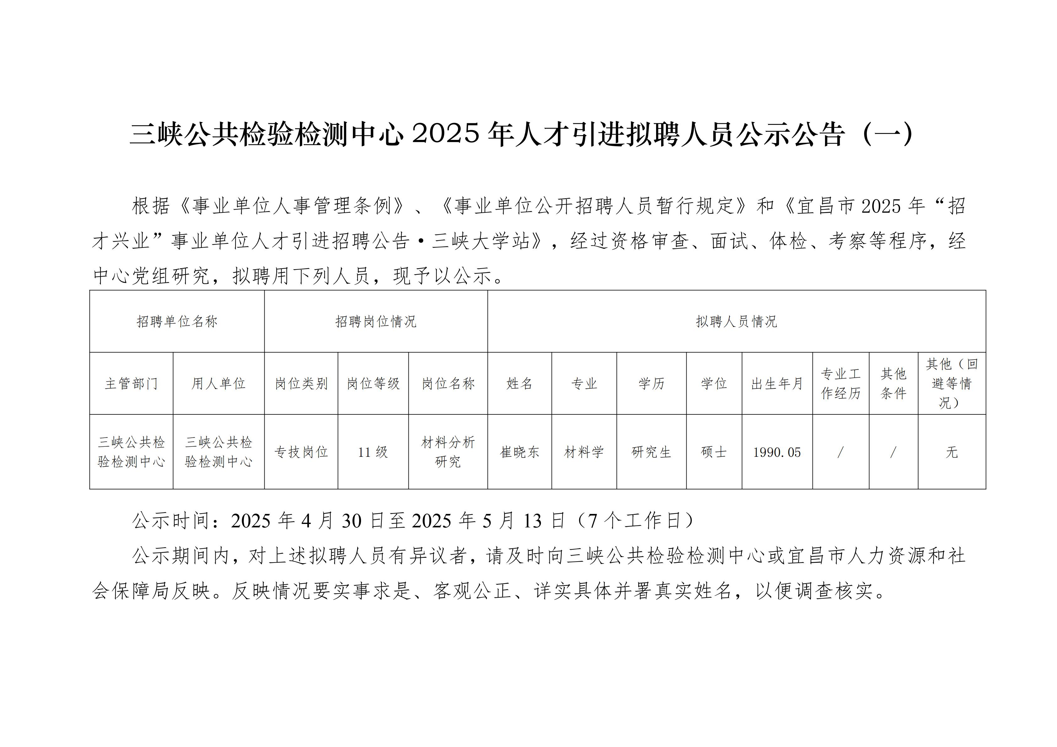 三峡公共检验检测中心2025年人才引进拟聘人员公示公告
