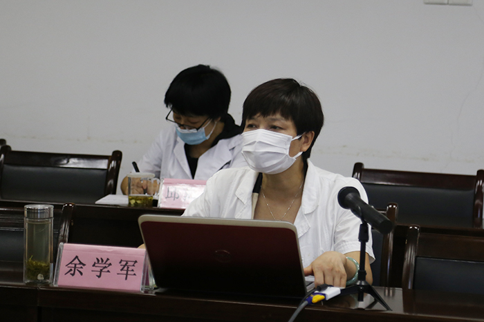 首次会议上,中心主任余学军从申报的项目、基本情况、体系建设与运行情况、内审和管理评审情况等四个方面做了介绍。